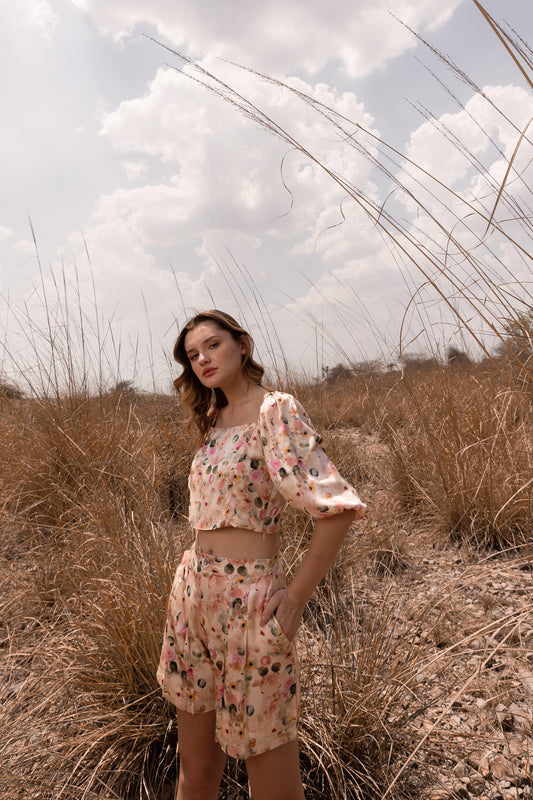 WHISPERING PASTELS CROP TOP AND SHORTS CO-ORD