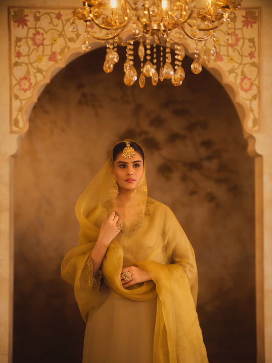 TAJRA GOLD ZERO-NECK A-LINE KURTA SET