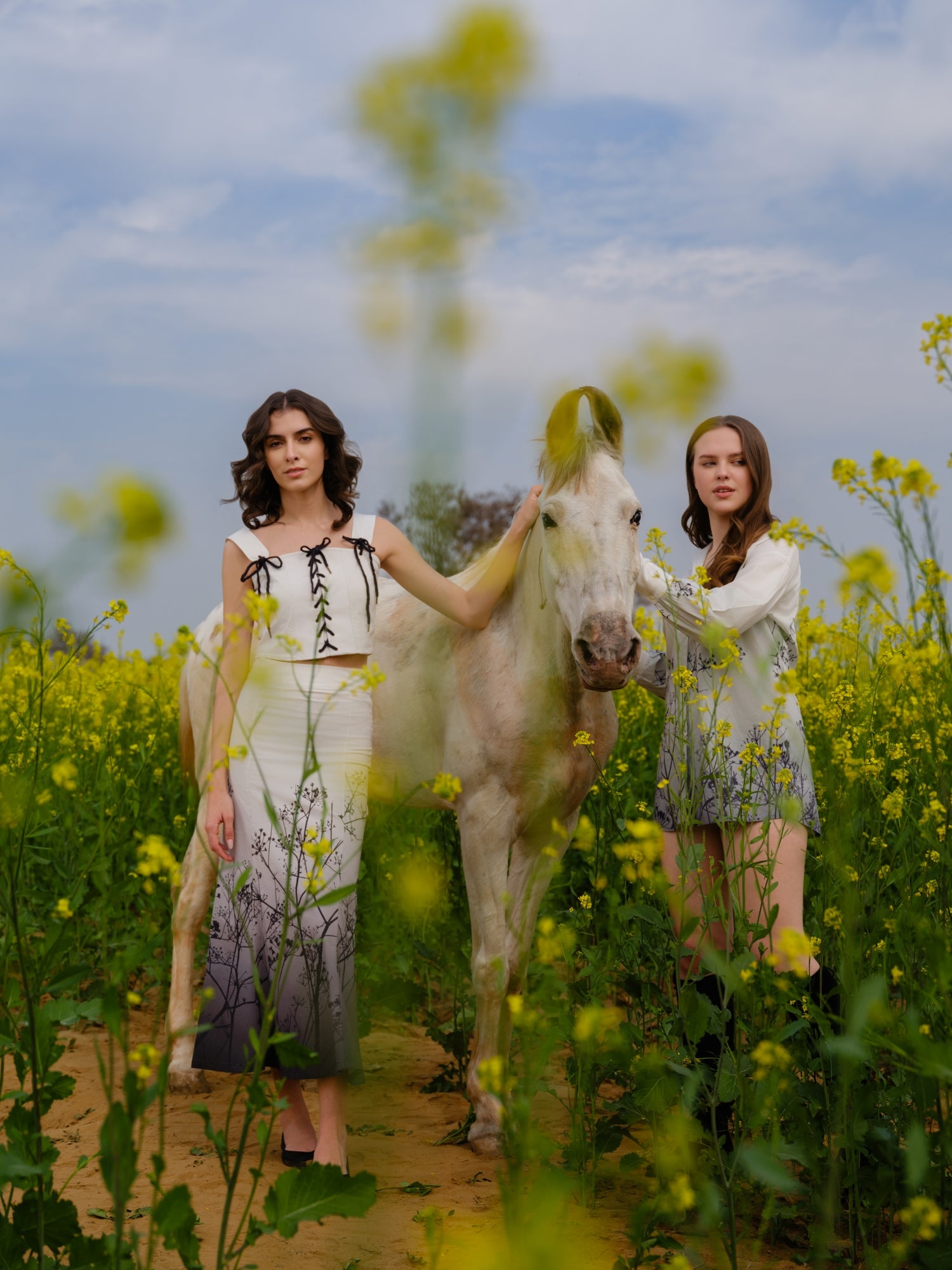 Inspired by the striking simplicity of monochrome design, this collection redefines elegance with a bold, minimalistic twist. The contrast of black and white evokes the timeless charm of wildflower meadows, while embracing high-fashion refinement.