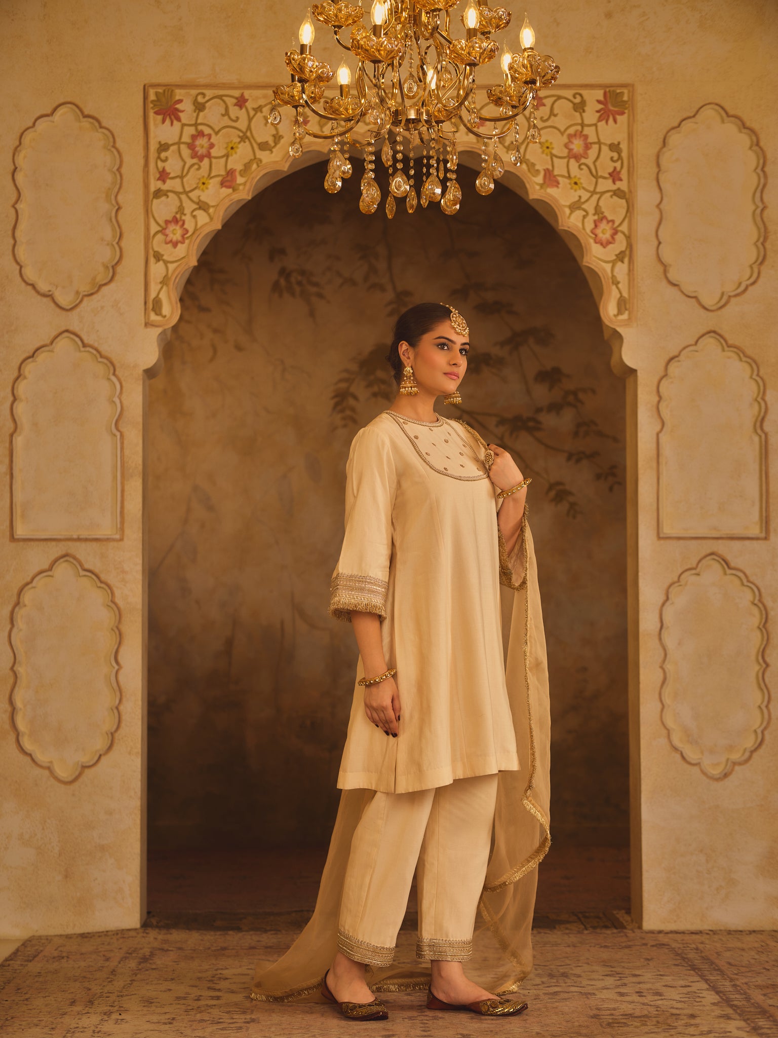 GULBANO CREAM ZERO-NECK A-LINE KURTA SET