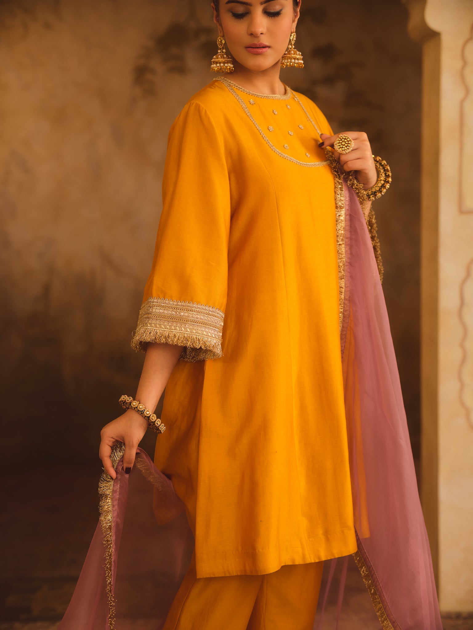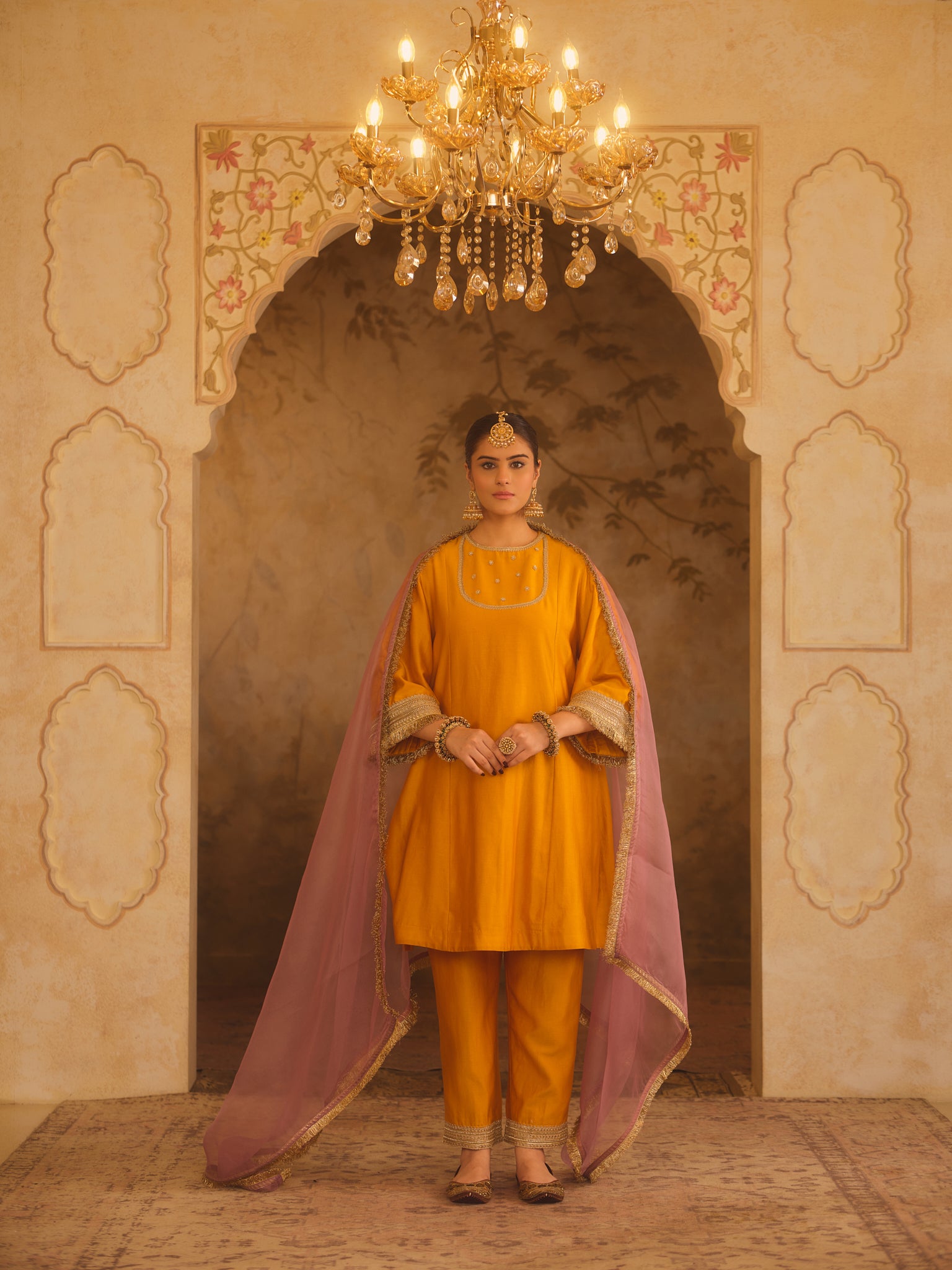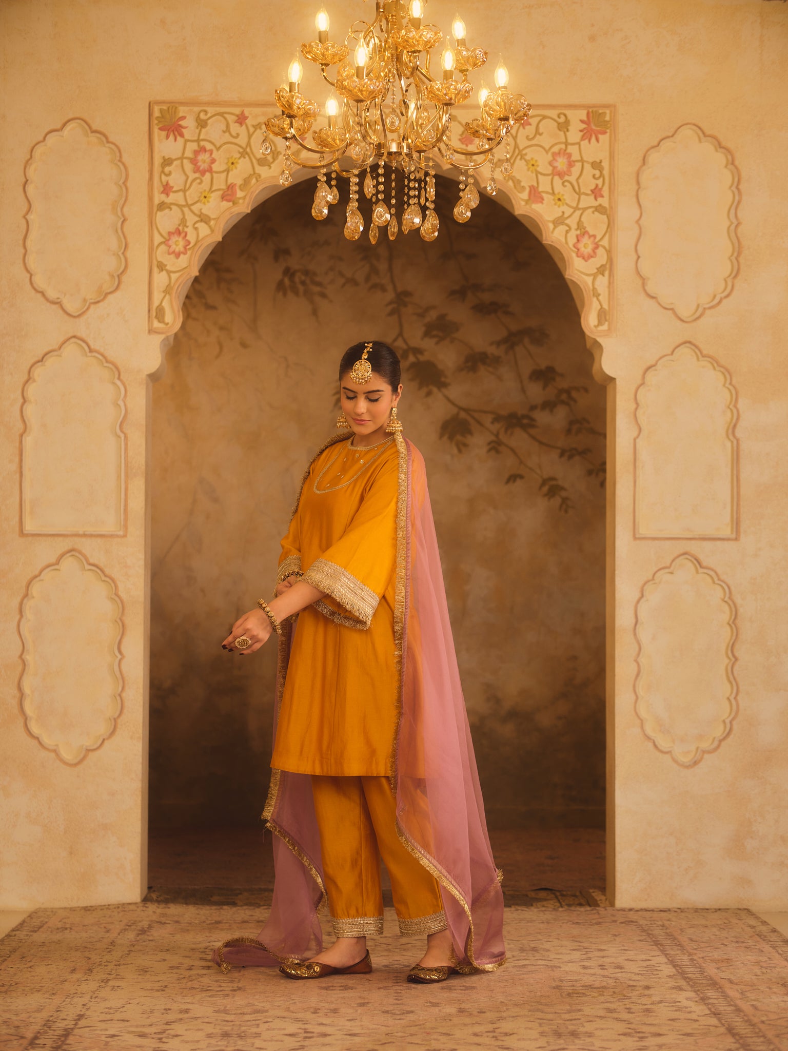 • Fabric : Kurta & Pants - Chanderi Silk, Dupatta – Silk Organza