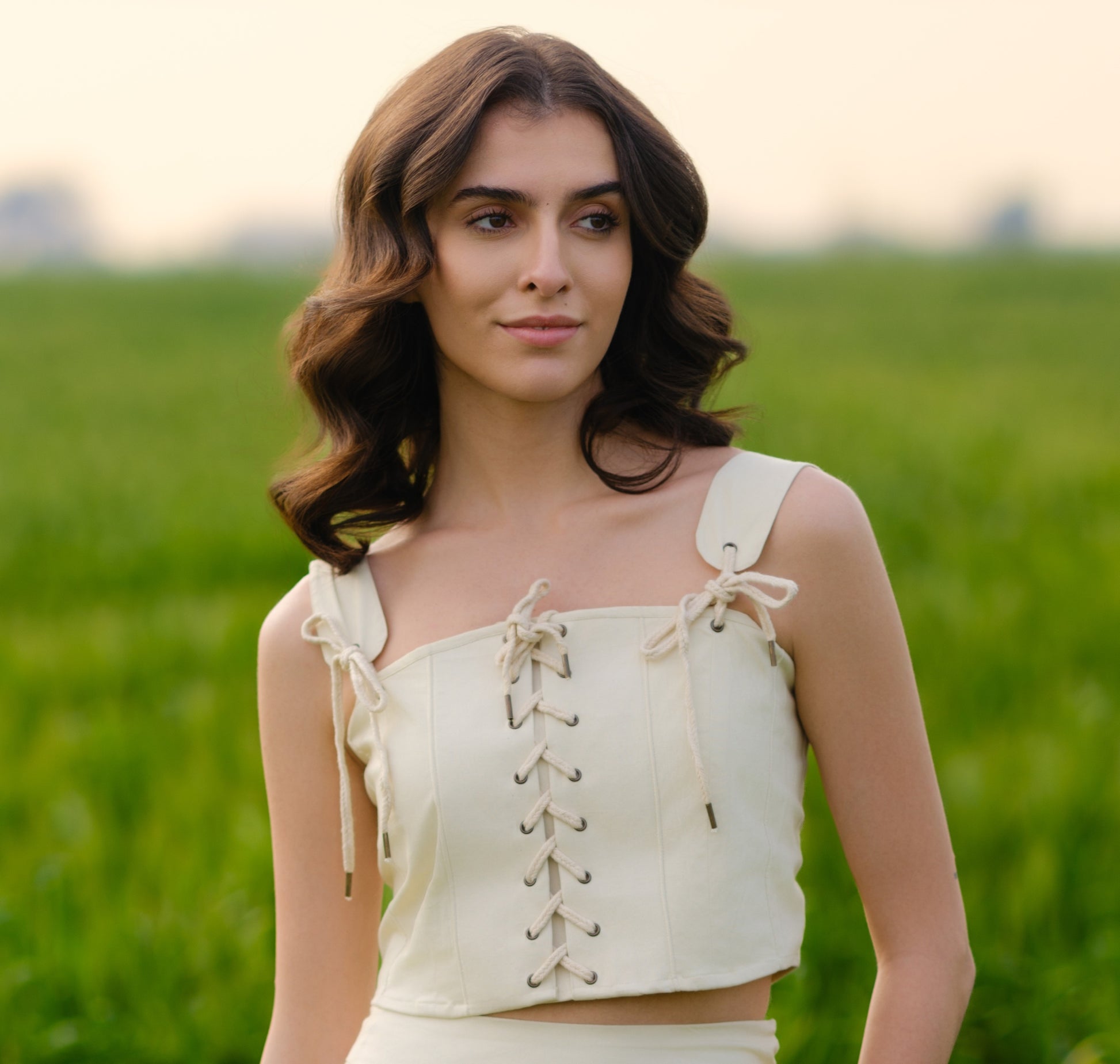Make a bold statement with our Corset Style Cream Crop Top – where vintage-inspired elegance meets modern edge. Designed to sculpt and flatter, this top is perfect for creating a sleek and confident look.