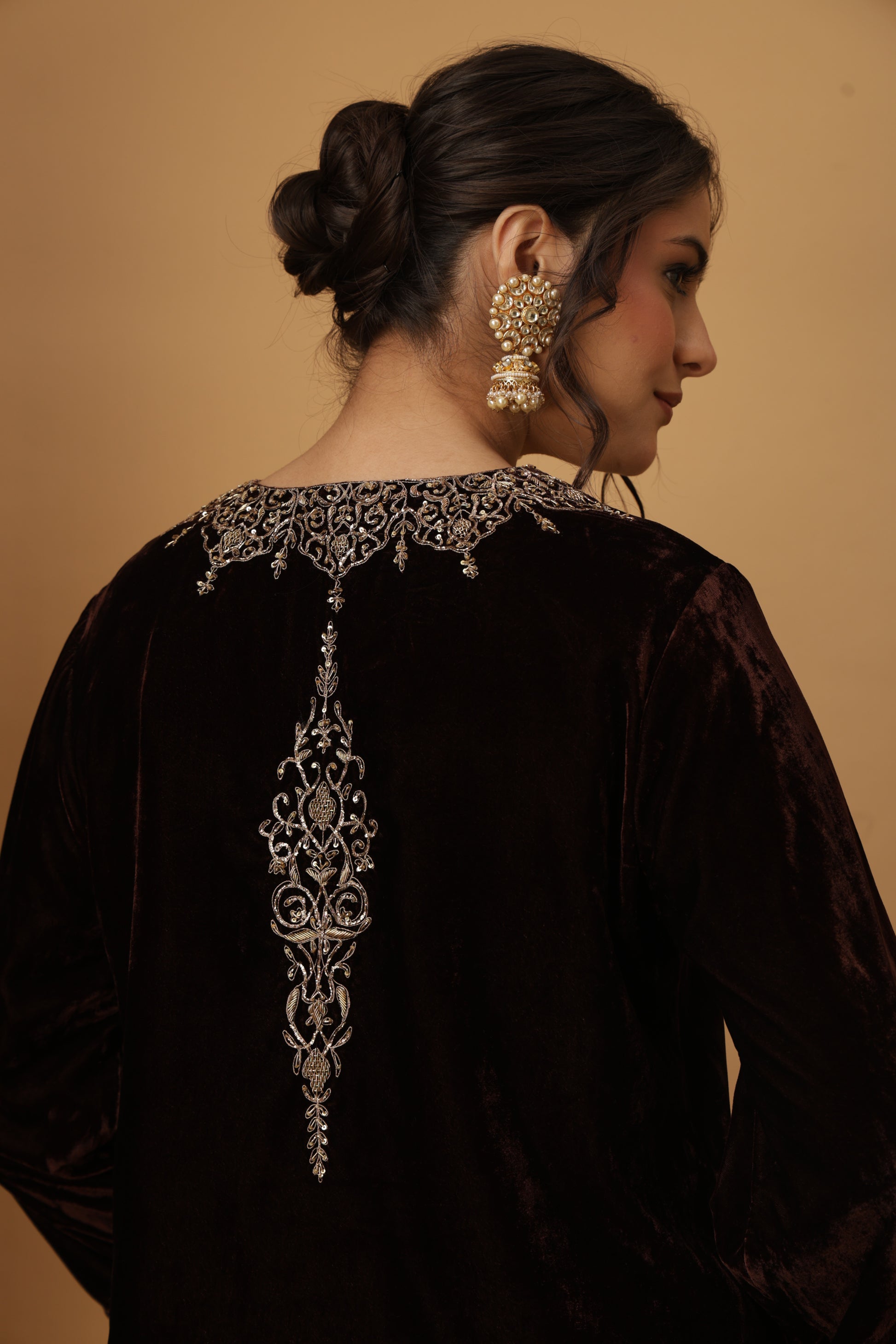 Zar-e-Makhmal Brown V-Neck Kurta Set